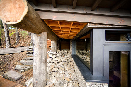 ⠀ Кстати, брёвнышки скрывают железобетонные балки. Как вы думаете, как мы поднимали эти бревна? Без крана? Вес каждой - более 500 кг.