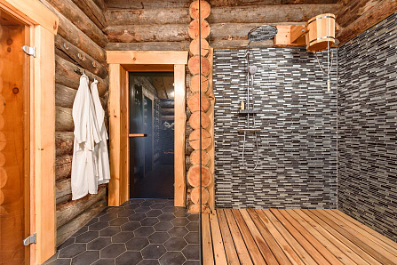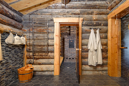 Бассейн, кстати, в этом проекте появился не случайно. Дети нашего заказчика обожают купаться, и жена поставила условие: баня должна быть с бассейном. Желание клиента - закон, результат на фотографиях.