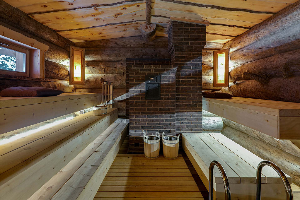 В этой бане комфортный и совершенно удивительный интерьер для русской банной традиции, который заслуживает внимания. Ничего не напоминает? Да, друзья, это легендарные 90-е. А мы сделали то, что смогли сделать - запечатлели их в дереве и камне.